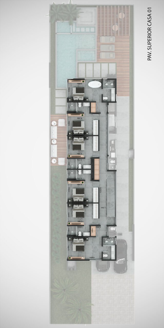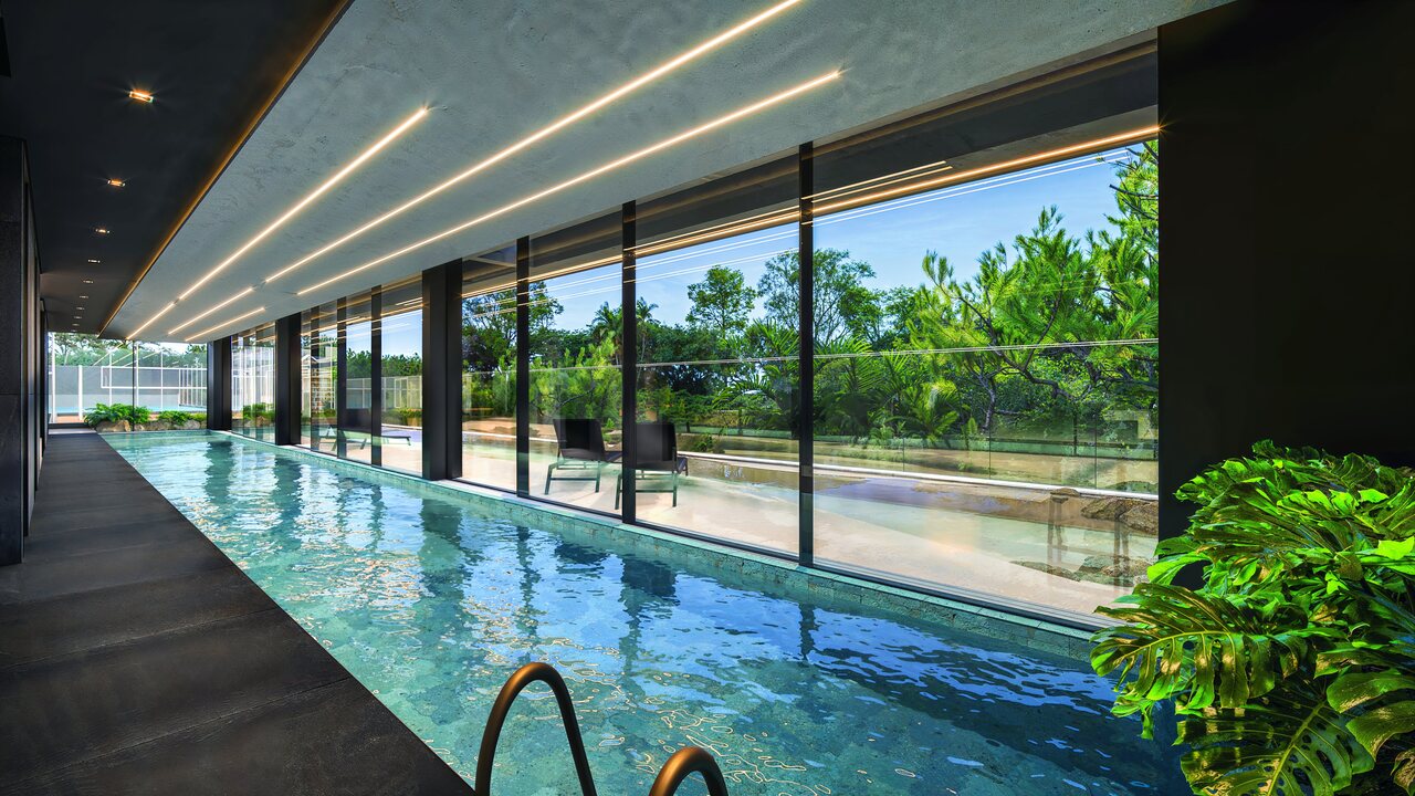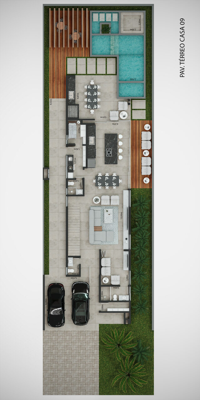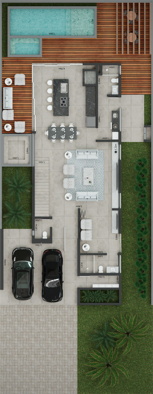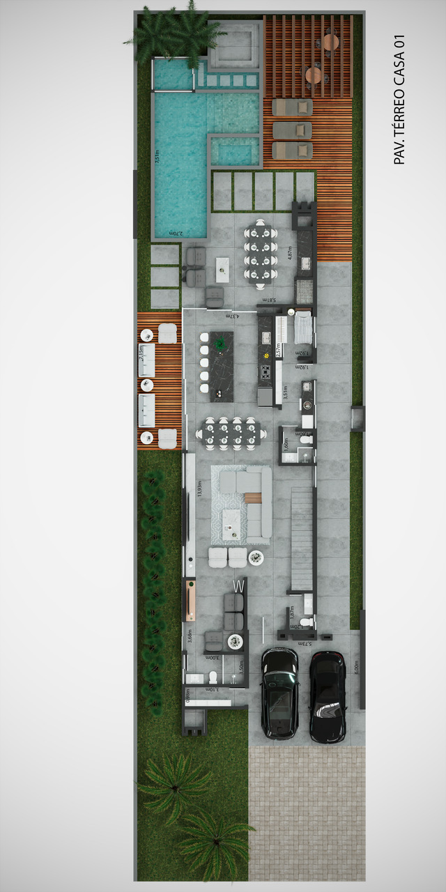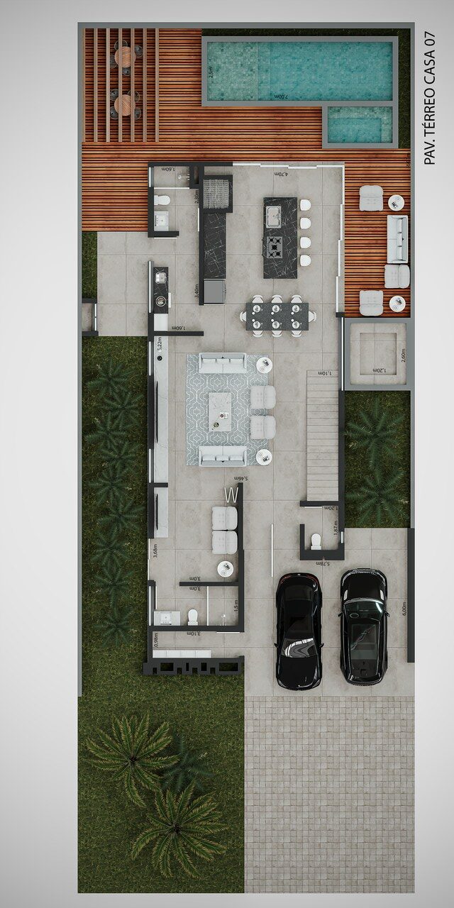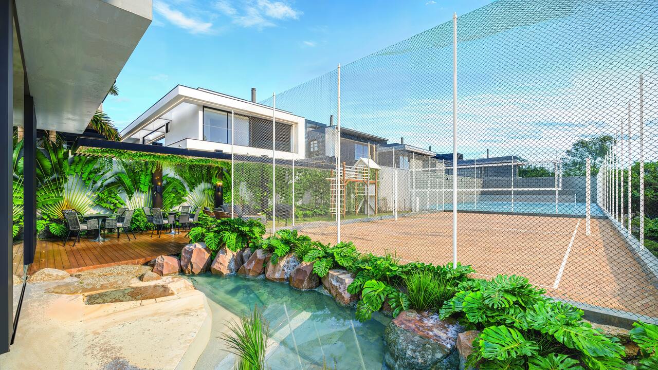 “Como o empreendimento faz divisa com o campo de golf, cada casa assinada tem a sua identidade própria, inspirada em um tipo de jogada , gerando a conexão entre o projeto com o contexto do entorno. Foi pensado para cada usuário ter a experiência no uso da sua casa com a sua família contando com uma área de lazer completa somando com o clube privativo. Arquitetura contemporânea com o uso de materiais e texturas exclusivas para viver experiências únicas”