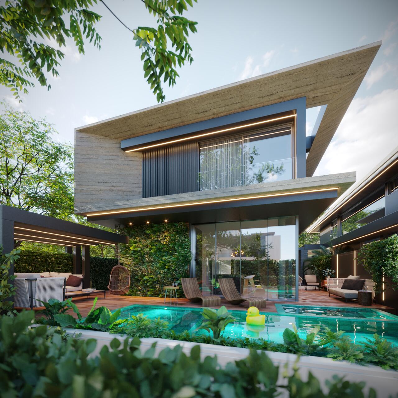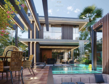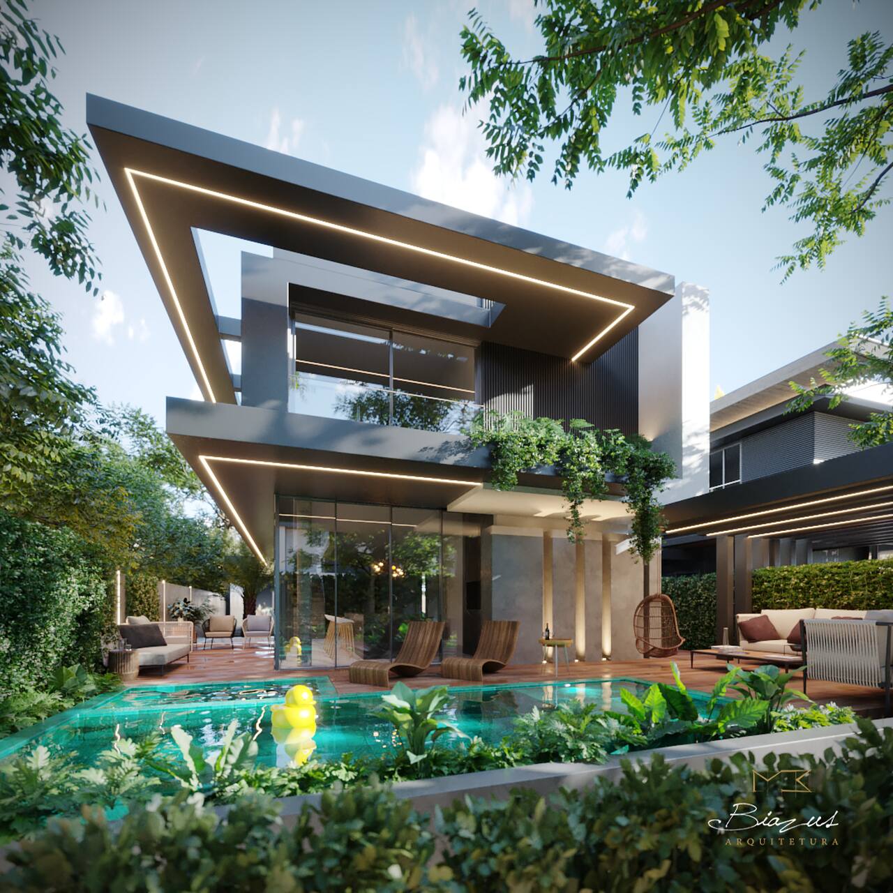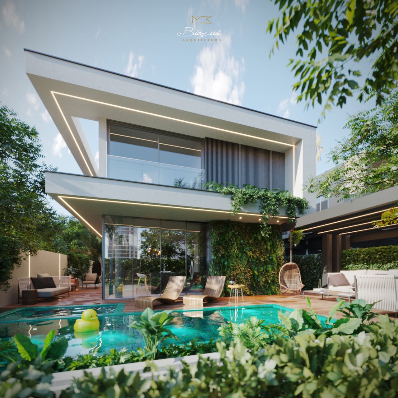 “Como o empreendimento faz divisa com o campo de golf, cada casa assinada tem a sua identidade própria, inspirada em um tipo de jogada , gerando a conexão entre o projeto com o contexto do entorno. Foi pensado para cada usuário ter a experiência no uso da sua casa com a sua família contando com uma área de lazer completa somando com o clube privativo. Arquitetura contemporânea com o uso de materiais e texturas exclusivas para viver experiências únicas”